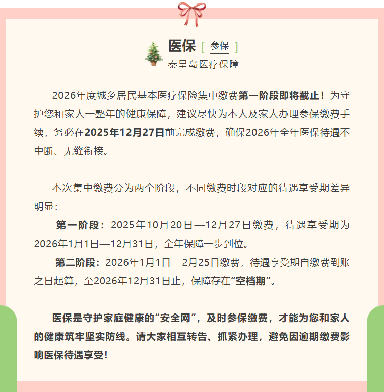 秦皇島市醫(yī)療保障局 | 致全市廣大市民朋友們的溫馨提醒