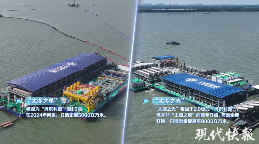 未來(lái)6年內(nèi),“太湖之光”在宜興太湖水域?qū)⑼瓿沙f(wàn)立方米的清淤任務(wù),相當(dāng)于為太湖“減負(fù)”約4000個(gè)標(biāo)準(zhǔn)游泳池的淤泥量。同時(shí),“太湖之光”各艘模塊船可靈活組合、動(dòng)態(tài)調(diào)動(dòng),適配全國(guó)多個(gè)平原淺水型湖泊的治理需求。