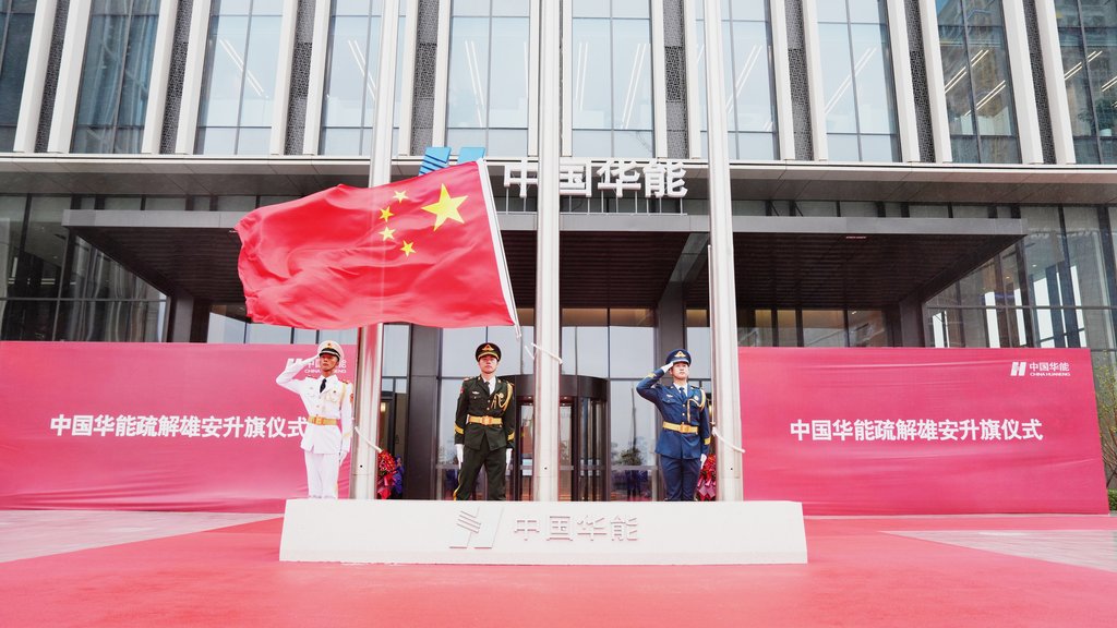 10月9日,中國華能集團(tuán)有限公司舉行入駐雄安總部大樓升旗儀式。雄安傳媒中心供圖
