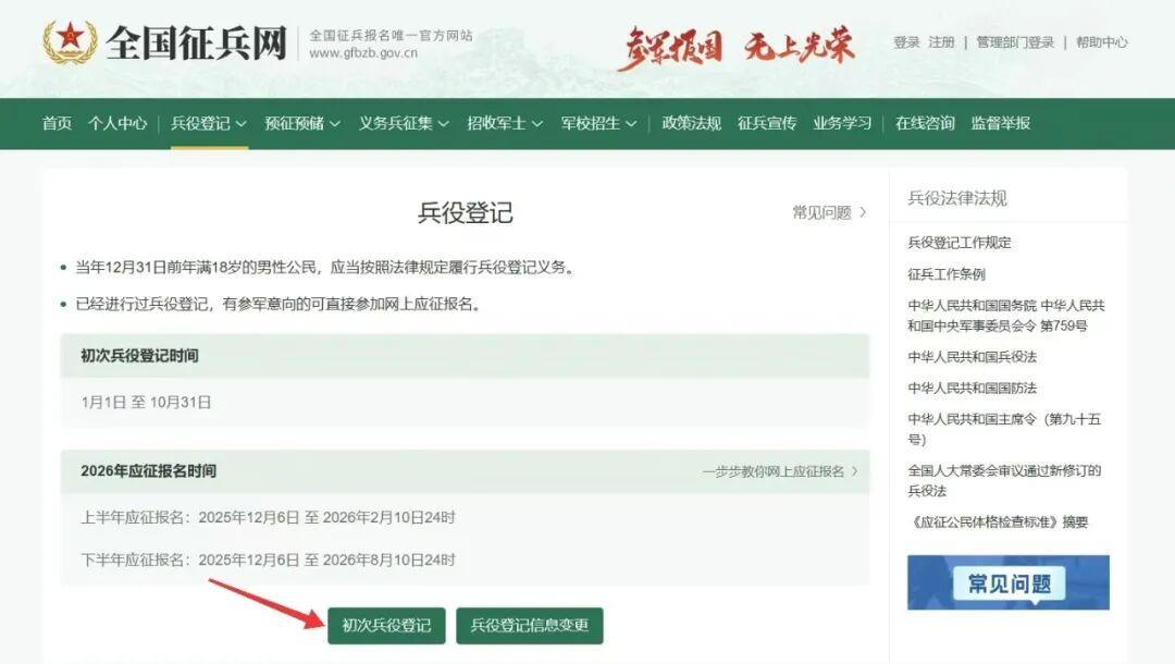 參加兵役登記是法律賦予每個(gè)適齡男性公民應(yīng)盡的光榮義務(wù)和神圣責(zé)任。根據(jù)《中華人民共和國(guó)兵役法》《征兵工作條例》《兵役登記工作規(guī)定》《河北省征兵工作條例》,現(xiàn)將秦皇島市2026年兵役登記有關(guān)事項(xiàng)公告如下: