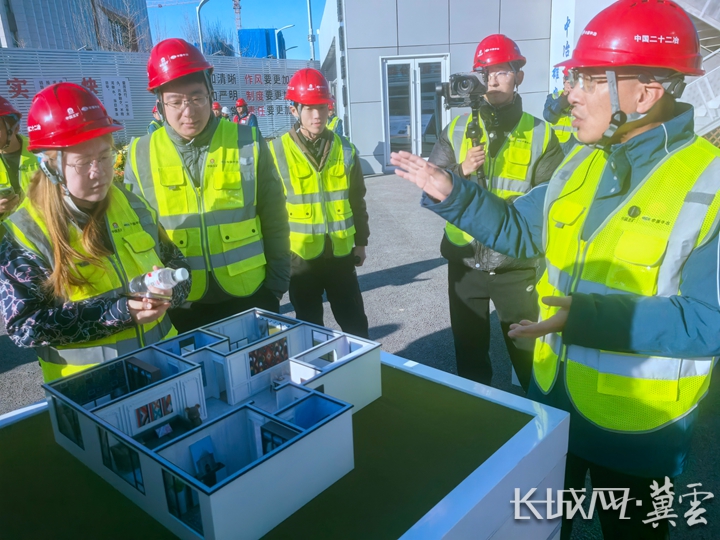 中國二十二冶集團雄安新區(qū)啟動區(qū)創(chuàng)新坊住宅項目相關負責人向參觀者介紹“好房子”標準。長城網(wǎng)·冀云客戶端記者 吳新光 攝